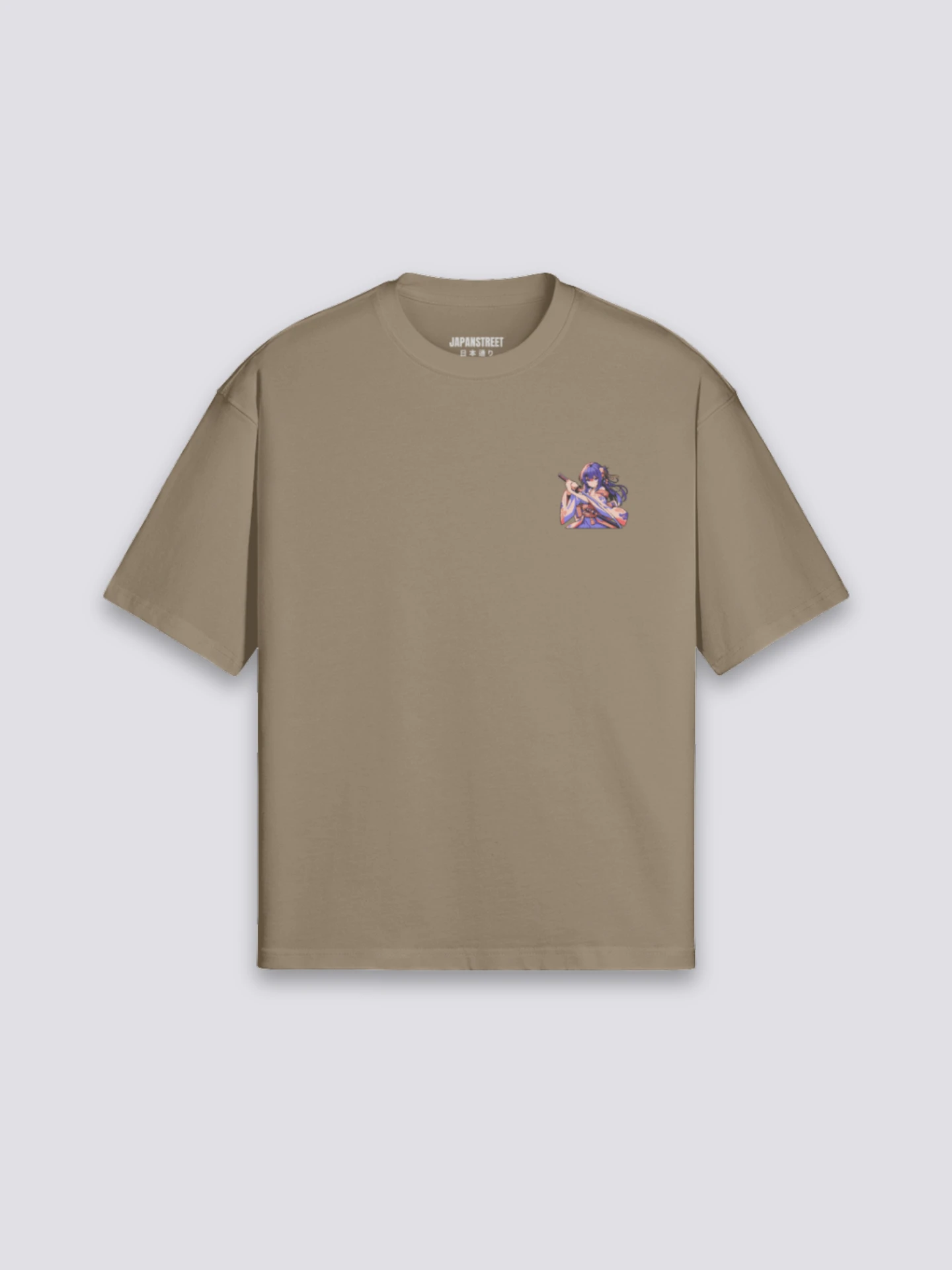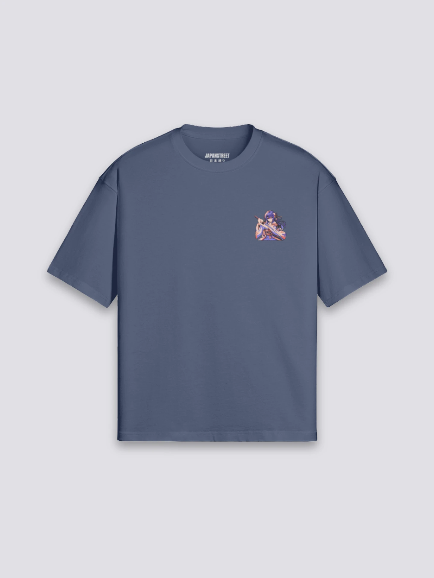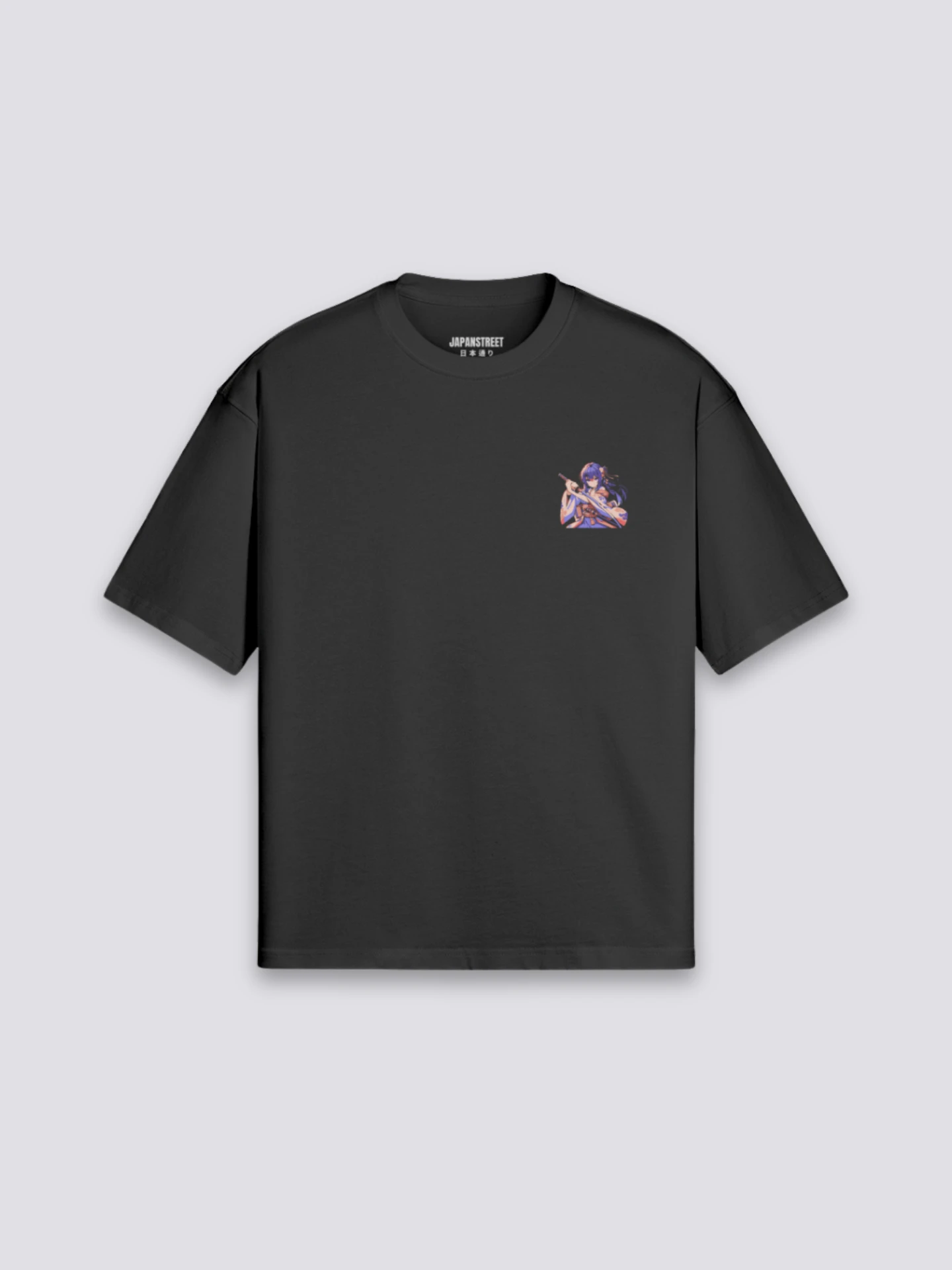 This Genshin Impact T-shirt showcases the iconic Raiden Shogun, one of the most powerful characters in the game, in a dynamic pose wielding her katana. The illustration perfectly captures her energy and determination, with fine details such as her flowing purple hair and intense gaze, surrounded by glowing visual effects that highlight her immense power.
