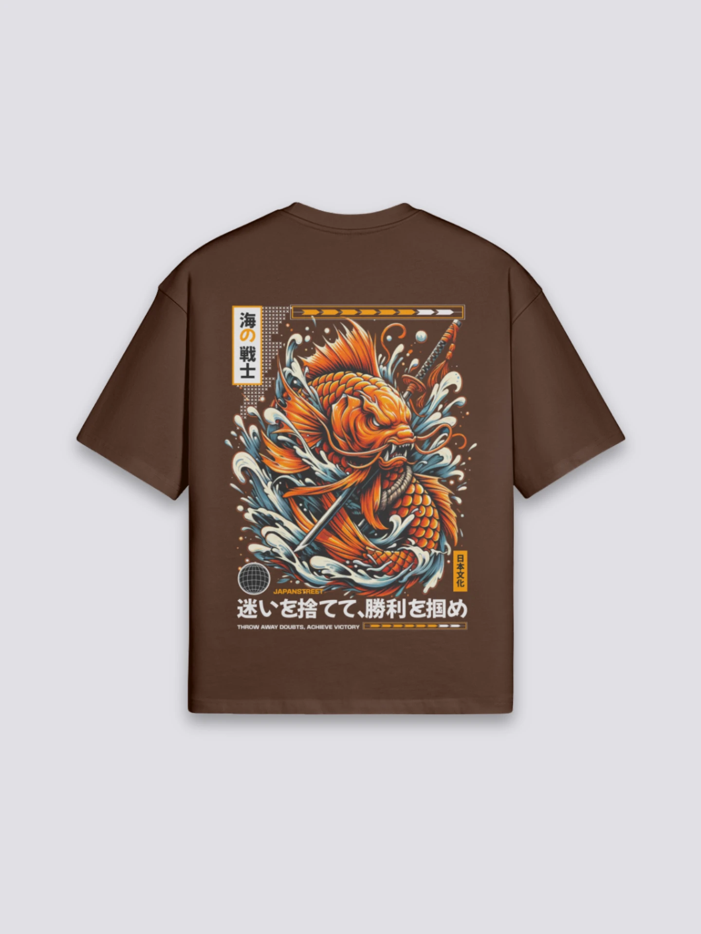 The design of this Japanese T-shirt depicts a fierce koi fish, with an inscription in a Japanese dialect symbolizing our personal vulnerabilities and the effort we must make to overcome them to become stronger individuals. Made from soft, thick cotton, this T-shirt will keep you cool during the summer while maintaining an authentic urban look.