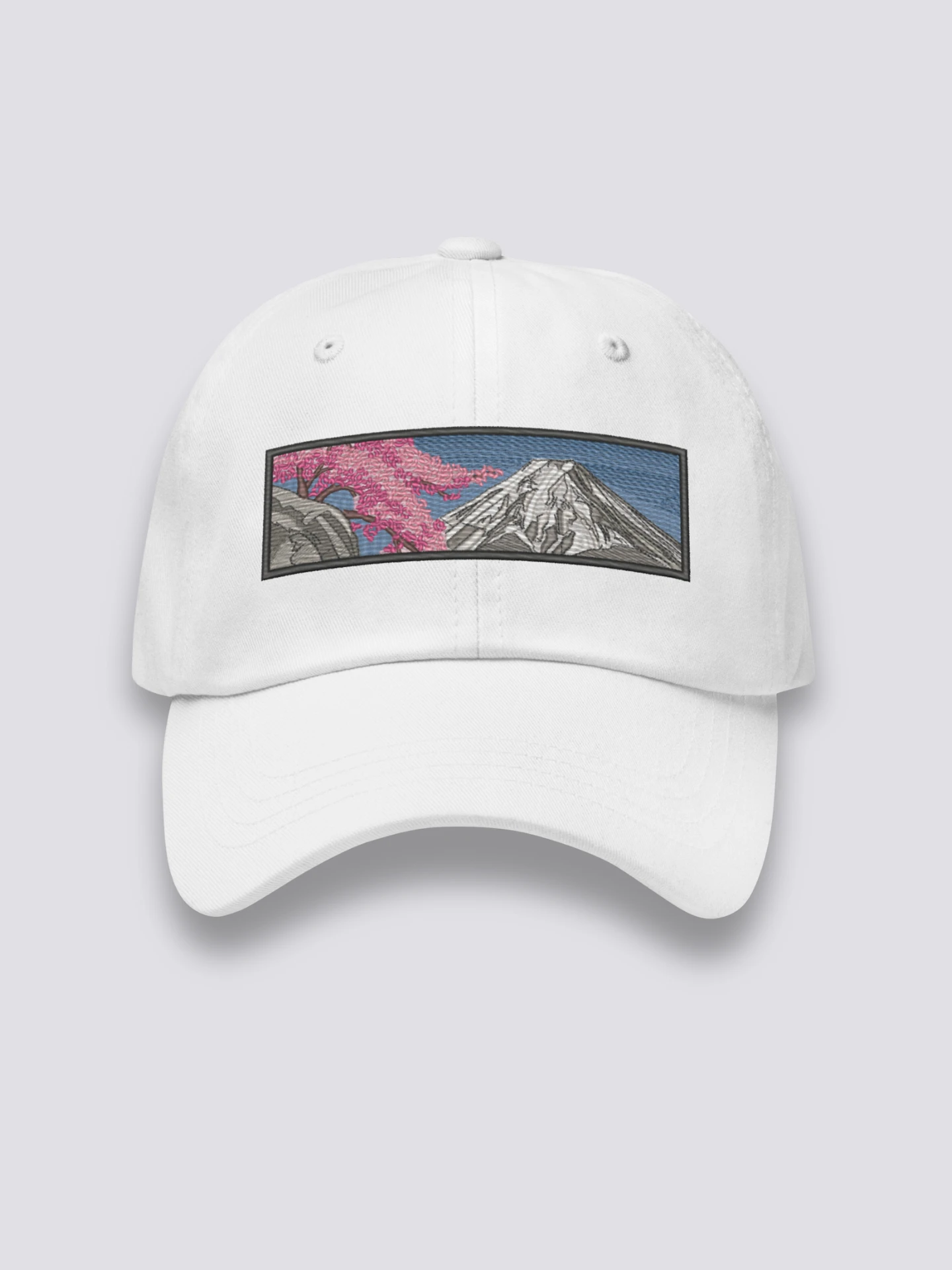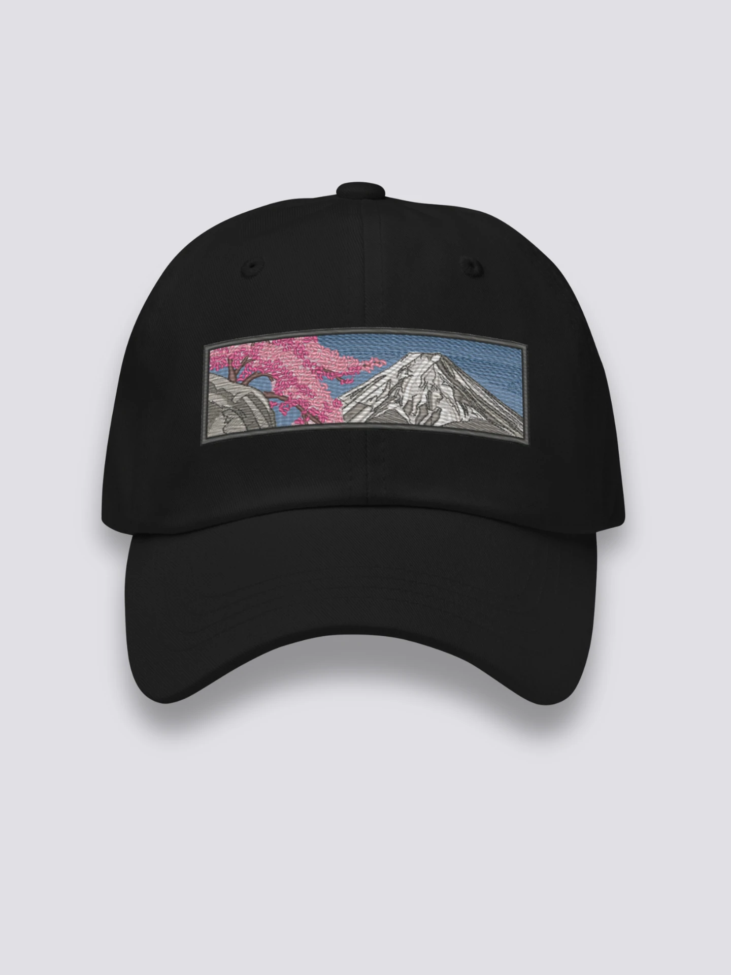 Japanese Landscape Cap Embroidered Mount Fuji and Sakura