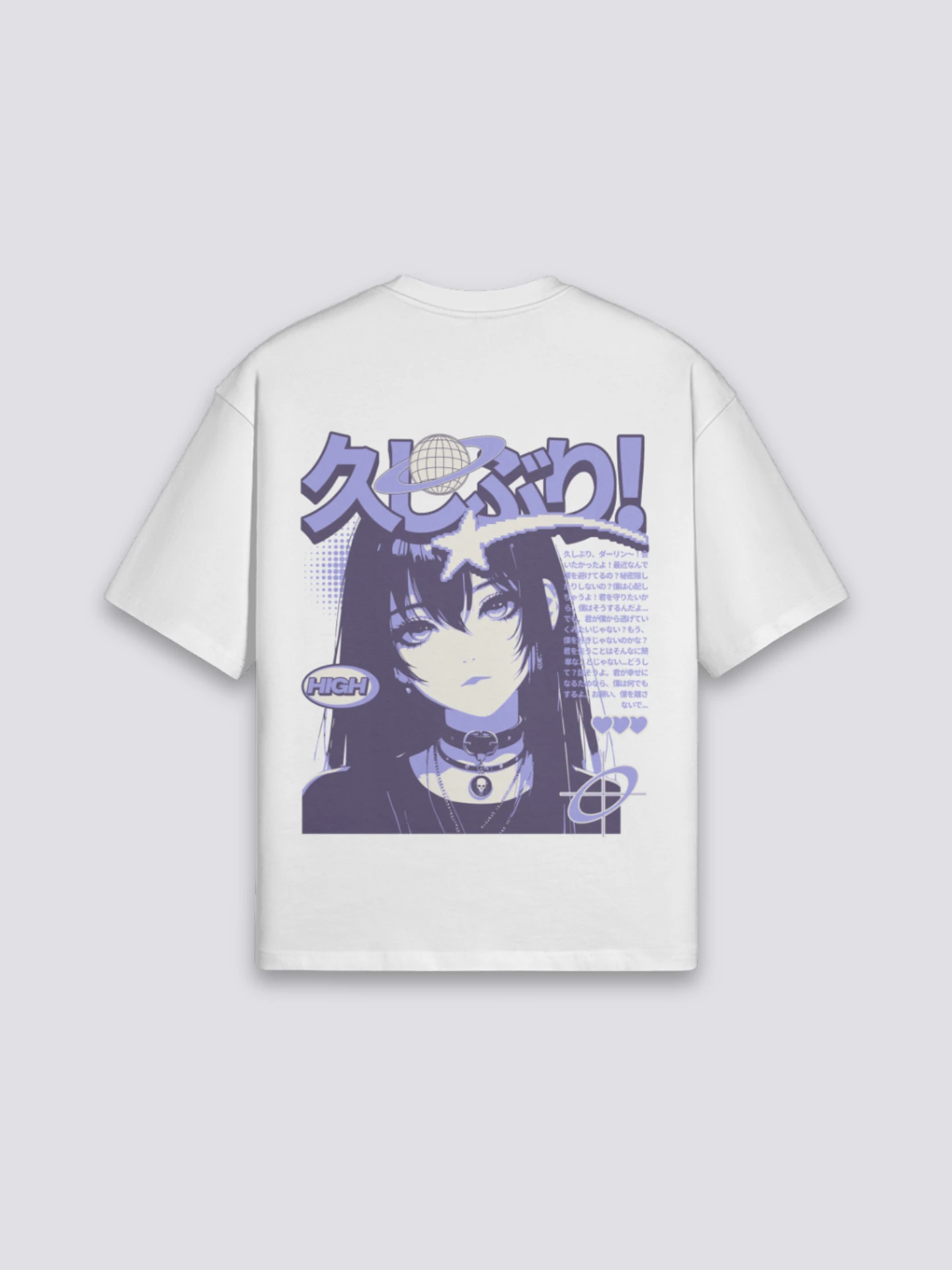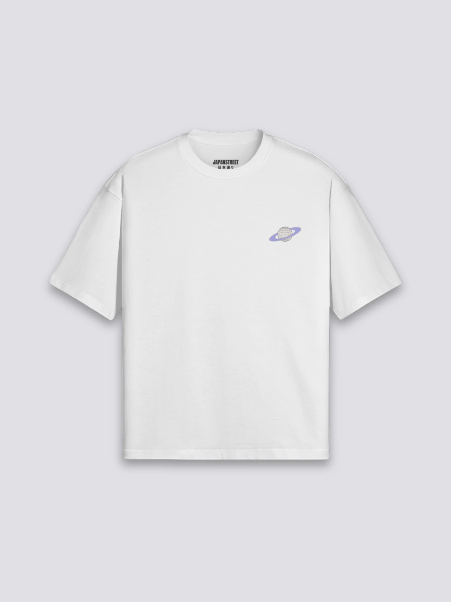 The complex graphic design, enriched with Japanese text and elements like a planet and hearts, creates a modern and bold look. Perfect for manga and anime enthusiasts, this Japanese T-shirt is an ideal choice to showcase your passion with elegance and originality. Add this distinctive piece to your wardrobe and dive into the fascinating world of Japanese manga.