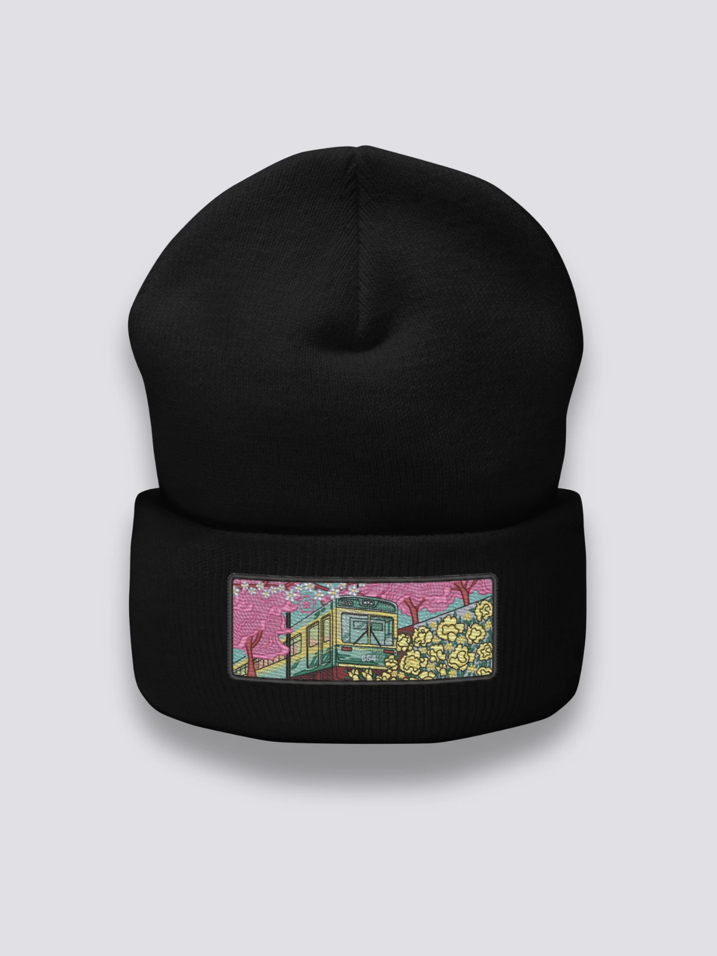This old-school Japanese beanie pays tribute to the vintage aesthetic of Japan’s trains and the calm beauty of spring landscapes. Featuring detailed embroidery of a retro train passing through blooming cherry blossoms, it evokes the peaceful journeys through Japan’s changing seasons. Perfect for lovers of nostalgic Japan and truly unique accessories.