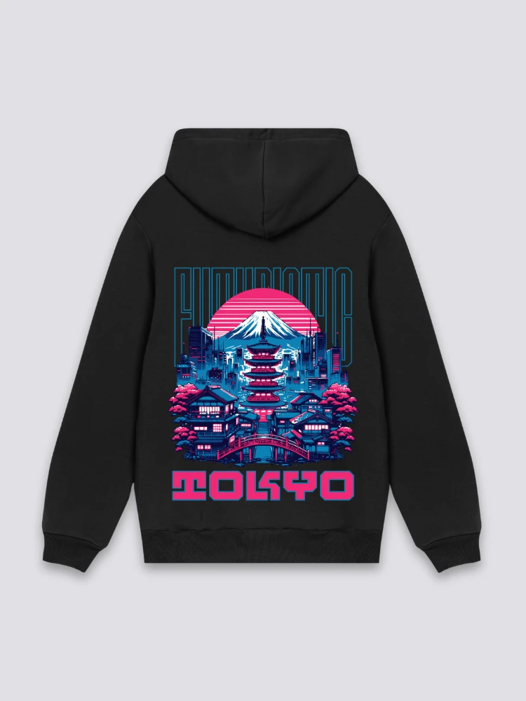 Immerse yourself in the futuristic vibe of Japan’s capital with this Tokyo Hoodie, the perfect fusion of tradition and modernity. Inspired by the neon lights of Shibuya and ancient temples, this unique design captures the city’s vibrant spirit. A spectacular sunset over Mount Fuji dominates the scene, symbolizing the meeting of old and new. Ideal for fans of streetwear and Japanese culture, this sweatshirt is a visual journey into the heart of Tokyo, the city of contrasts and lights.